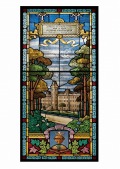 S-09【世界のステンドグラスシール】森の中の学園 タイプC W300mm×H600mm